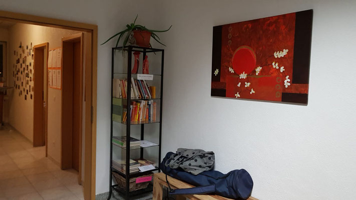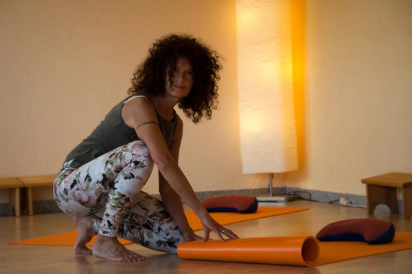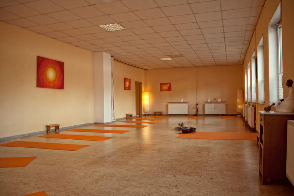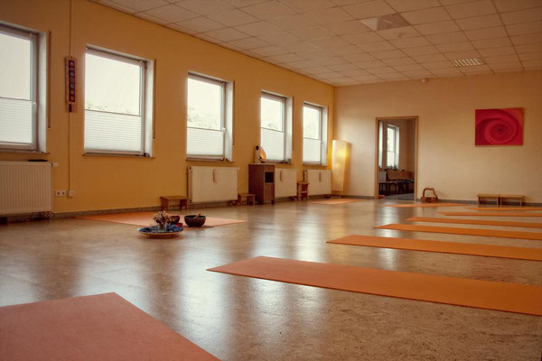 Dort laden zwei geräumige helle Räume, ausgestattet mit Matten und Sitzbänkchen, zum Üben ein.